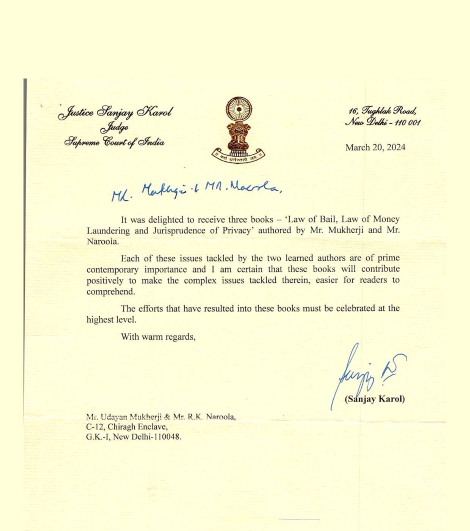 We are greatly honored having been blessed by the above kind communications from their Lordships of the Hon’ble Supreme Court, Hon’ble Mr. Justice Sanjay Karol and Hon’ble Mr. Justice Sanjay Kumar. These will certainly encourage us to improve on the content, clarity and depth of future editions.